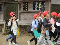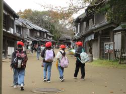 体験の後は、商屋街と武家屋敷を回ります。 ルールをしっかり守って、グループで声を掛け合いながら見学しています。 |