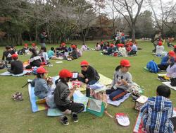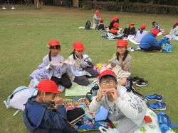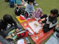 友達と一緒にお弁当をいただきます! どの子も笑顔いっぱいです。 |