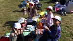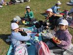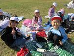 お弁当は、海の見える広い芝生の上で食べました。お家の方が用意してくださったお弁当を、美味しそうに頬張っていました。 天気も良く、気持ちの良いランチタイムでした。 |