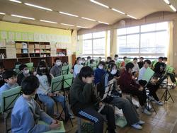 式が終わった後、サプライズで吹奏楽部からクリスマス演奏がありました。 演奏もばっちりで、カチューシャや被り物も可愛らしかったです。 |