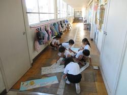 2年生が1年生に遊び方を教えています。子ども達同士の教え合う姿が、たくさん見られます。 「2年生から教わった1年生が、今度入学してくる1年生に色々なことを教える」といったサイクルができてきます。 |