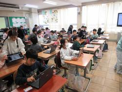 また、6年生の教科担任制の授業も見学しています。 どこの学校の先生も、日々勉強をしているんですね。 |