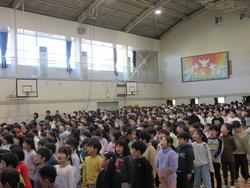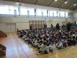 体育館に全校が集まって、終業式を行いました。 3年生、6年生の代表の人から「2学期に頑張ったこと」の発表がありました。2人とも、立派な発表でした。 |