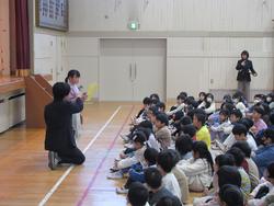 今日は、朝の読み聞かせ。 ボランティアの方、担任の先生が本を準備して、子ども達に読み聞かせを行ってくれました。 |