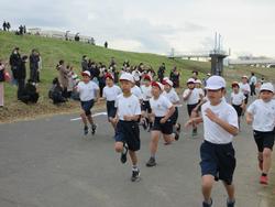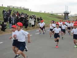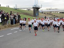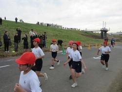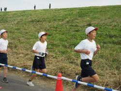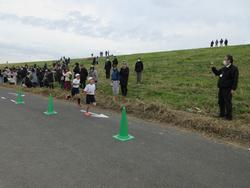 | 低学年の子たちも、たくさんの応援の中、一生懸命に走っています。 | |