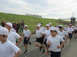 校長先生のスタートの合図で、一斉に走り始めます。 長い距離を、自分のペースで走ります。 |