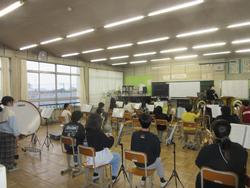吹奏楽部は朝練習に取り組んでいます。 基本に立ち返り、音を合わせるところから始めています。 |