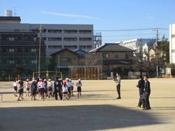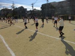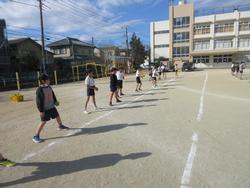 マラソン大会まであとわずか、天気もよさそうです。 体育の時間の始めに、時間を決めて走っています。 |