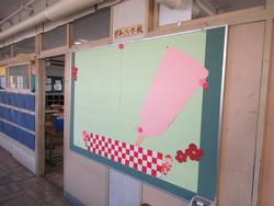 各学年の掲示板も、1月バージョンに早変わりです。 大きな羽子板や絵馬が見えますね。 |