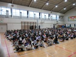 冬休みが終わり、3学期が始まりました。 全校の皆さんは、姿勢よく話を聞いています。 |
