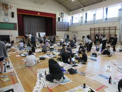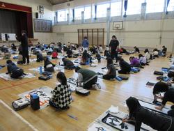 今日から書き初め大会が始まりました。 3・5年生が体育館で行います。 |