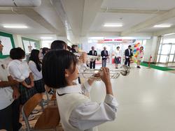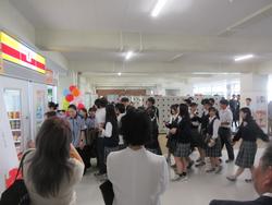 本日、ヤマザキショップ市立松戸高校店 開店セレモニーが開催されました。 待ちに待った待望のコンビニが開店しました。校長先生が挨拶の中で、3つのこだわりについて話がありました。まず、有人のレジであること。次に、その日に調理されたパン、おにぎりであること。最後に、市松生にとって必要なもの(日用品)があること。 そして、最後に、「この生徒参画型のコンビニを充実させて、マーケティング、経済・社会とのつながり、キャリア教育と絡めていく」というメッセージを発信しました。 生徒会長からは、「大きな支えがあってこそ。この環境に感謝していきたい」と熱弁しました。吹奏楽部のファンファーレとともにテープカットが行われました。 開店に向けて多大なるご支援をいただいた、同窓会、PTAをはじめ、山崎製パン松戸工場の方々、温かく見守っていただいた保護者・地域の皆様、関係者の皆様、本当にありがとうございました。購入した生徒の表情は笑顔があふれていました。 千葉県内、公立第1号店として市松生の心と体を満たしていきます。