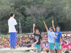 空は澄み渡り、広がる青空の下、生徒たちは胸を高鳴らせながら体育祭に参加しました。生徒代表からは、「感謝の気持ちをもつこと」校長先生からは、「勝ちに行く、記録更新」、「怪我をしない、させない」、「プラスの方向に力を放出」と話がありました。「市松史上最高の体育祭に!」という言葉が選手たちの心に火をつけました。 ラジオ体操から始まり、競技は順調に進み、最後は3年生チームジャンプにおいて記録更新が出ました!3年生を中心にどの学年もどのクラスもチームワークが素晴らしく、光る汗と白い歯、そして最高の笑顔がグラウンドに散らばっていました。そして青・赤・白それぞれのチームの力と個性が競い合いました。 史上最高の体育祭。この記憶に残るドラマを塗りかえるのは、1,2年生。さあ、この熱き想いを胸に刻みまた一歩進んでいこう。 PTAの方々、生徒の安全と健康面をサポートしてくださりありがとうございました。 史上最高の体育祭 市松!! |