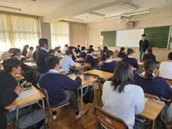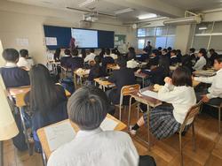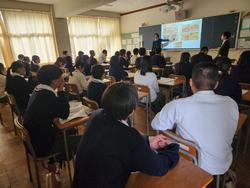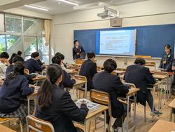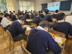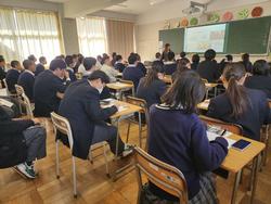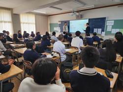 本日は1・3年生に向けて市松ジョブ探究を実施しました。さまざまな企業の方にお越しいただき、お話をいただきました。どの教室でも生徒たちは熱心に話を聞いており、自身のキャリアを考えていくうえで、とても貴重な体験になったと思います。ご協力いただいた企業のみなさまには心より感謝申し上げます。 |