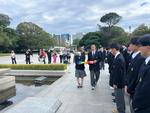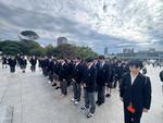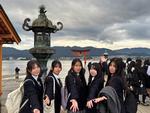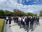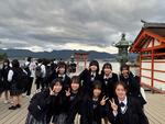 新幹線内での昼食~平和公園 12:40過ぎ、予定通り平和公園に到着しました。碑巡り、セレモニー、平和資料館の見学を行いました。生徒たちは皆、真剣な表情で添乗員の話を聞き、資料館の見学に臨んでいました。時間を守って行動することもでき、無事に次の目的地である宮島へ向かっています。