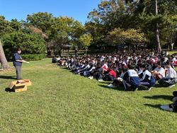 海外研修前の結団式が行われました! 本日5限目に10日間にわたるオーストラリア研修を前に、結団式が行われました! 式では、先生方から、「10日間の貴重な経験を通して多くのことを学び、支えてくださった先生方や保護者の皆様への感謝の気持ちを忘れずに過ごしてほしい」という温かい言葉が送られました。生徒たちは、市松の代表として、現地での学びや交流に意欲を高めています! その後、オーストラリアで披露する予定のスキット(英語劇)の最終リハーサルが行われ、どのグループも笑顔で堂々と演じていました! 本番に向けて、生徒たちの期待と緊張が入り混じる中、チームワークの素晴らしさを感じる時間となりました!オーストラリアでは、自信を持って日本の昔話の素晴らしさを伝えましょう! 心1つに 市松!! |