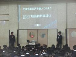 進路行事の一環として、2年次進路ガイダンスが開催されました。志望する進路先に関しての説明を聞き、自己の進路実現のために本格的に動き出す足掛かりとしています。 大学、短期大学、専門学校、就職 公務員等幅広く関係者を招聘し、生徒との熱い対話が各教室で行われました。あと1年後に迫る進路に対して真剣な眼差しで話を聴いていました。 就職コーナーでは、企業が求める人材ベスト3を述べていました。第一位は、コミュニケーション力。第二位は、実行力・行動力。第三位は、人柄。「話は目を見て、頷きながら」というメッセージが印象的でした。 今日の話をどう活かしていくか。勝負の時は、必ずやってくる。 未来、進行中 市松!! |