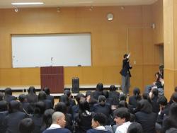 多目的ホールにて、国際人文科の3年生の代表者が、英語によるスピーチを披露しました。1,2年生は、先輩の姿を目に焼き付けながら、自分の挑戦する姿や1年後の自分をイメージしたことと思います。 発表者は、言葉一つ一つにエネルギーが凝縮しており、そこに、表情、声のトーン、スピード、アイコンタクト、ジェスチャー等が組み合わさり、訴求力に満ちあふれていました。 言葉の力をあらためて強く感じ、そして渾身のパフォーマンスに胸を打たれました。後輩たちは、これからどう行動していくのか、非常に楽しみです。 準備してくれた3年生、本当にありがとうございました。そして感動をありがとうございました。 人間味100% 市松!! |