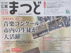 1年生は、英検の受験に向け、ICT機器を効果的に活用し、英検対策テストを行いました。 2年生は、職業学習です。計画・下調べを終え、今回は市内の企業、病院、市役所を訪問し、職業インタビューを行いました。 3年生は、学年集会を実施し、今学期の振り返りを行いました。成長したこと(集団として関わる力、受容する力、自己決定力)等についての話がありました。 ※『広報まつど』12.15版のトップページに、本校の吹奏楽部の活躍が掲載されました!是非、ご覧ください。 それぞれのミライに向かって 市松!! |