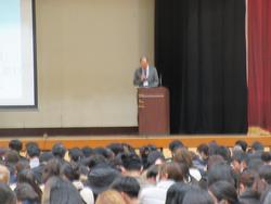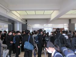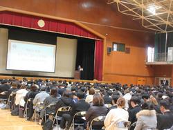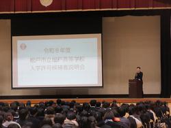 本日、本校体育館にて入学許可候補者説明会を開催しました。入学許可候補者と保護者の皆様にご来校いただき高校生活の概要や学校生活のきまり、学習等について説明を行いました。 入学許可候補者の皆さんは少し緊張した様子でしたが、これから始まる高校生活への期待も感じられました。4月の入学式で皆さんにお会いできることを教職員一同楽しみにしています。 未来の高校生集合 市松!! |
