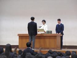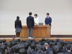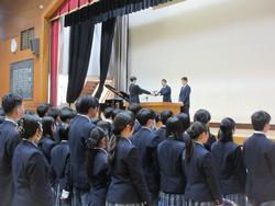 3年間の頑張りを讃える表彰式を行いました。また同窓会入会式では、卒業証書フォルダの紹介がありました。 卒業式予行練習も行いました。三年間の歩みを胸に刻み、厳粛な中にも温かみのある式となるよう、教職員、在校生一同心を込めて準備を進めています。明日は厳粛かつ感動的な式となるよう努めてまいります。 緊張と笑顔の間 市松!! |