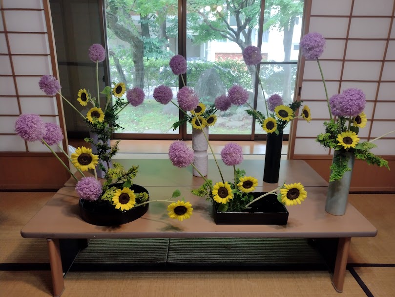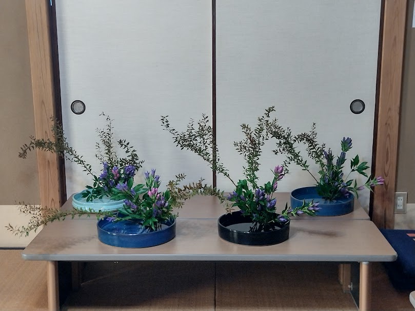 最近のお稽古の様子です。今は暑いのでお花の持ちが良くないですが、生活に少しでも潤いがもたらされることを期待して活けています。