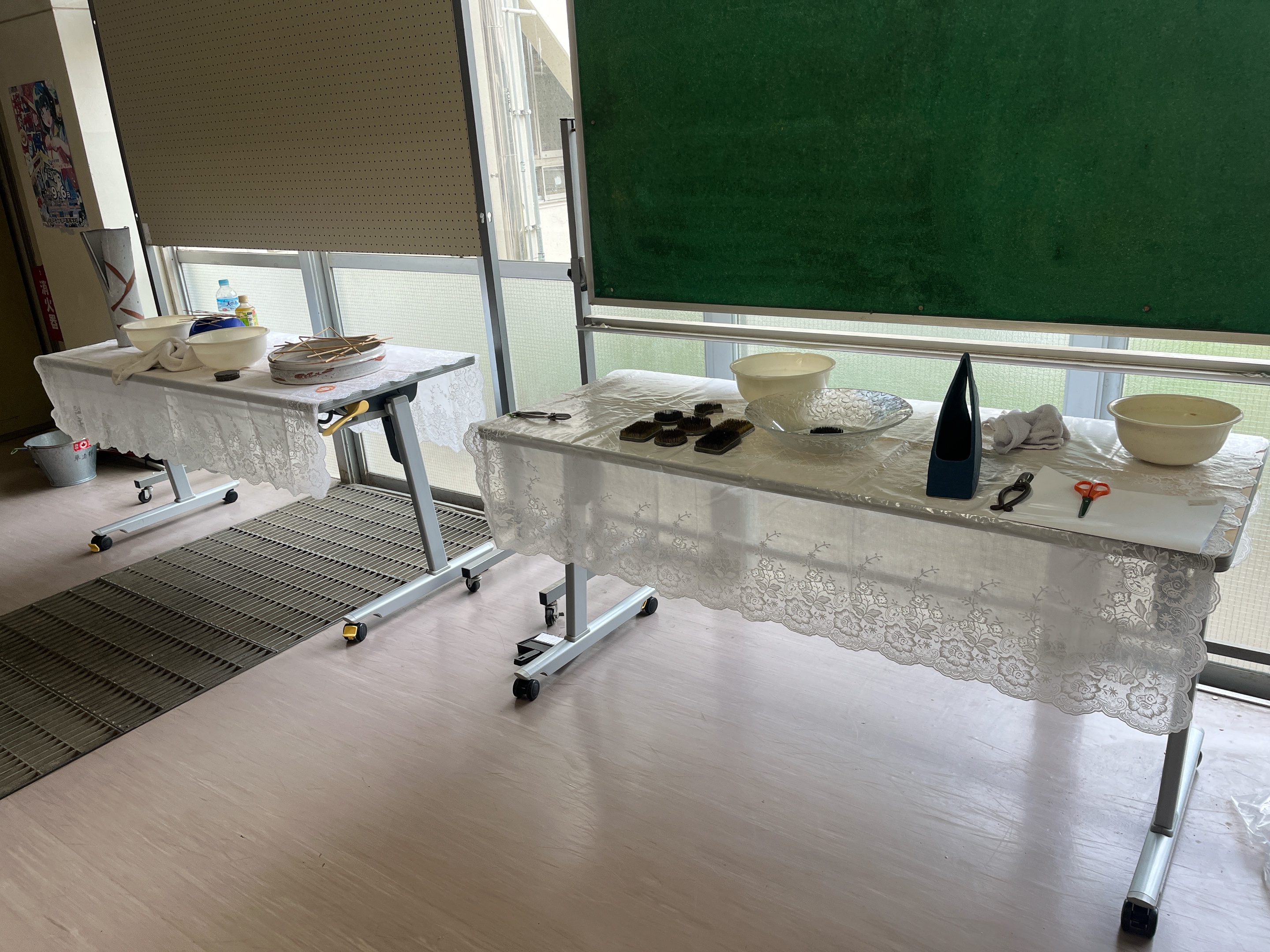 1年生は、投入(なげいれ)の際に用いる十文字留めに苦労している様子が見られました。