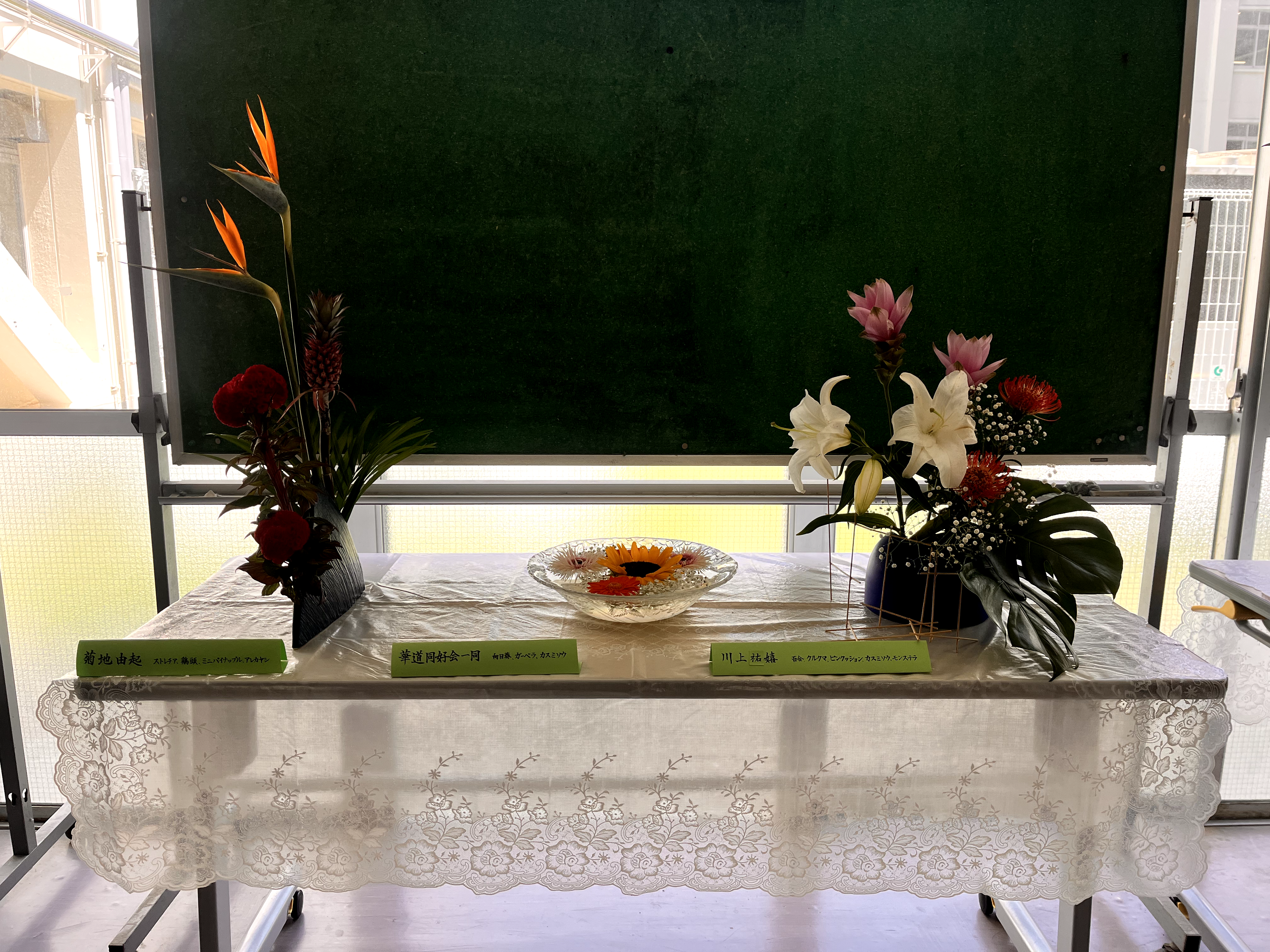 本日は文化祭での花材を各々自由に選び、使用しました。