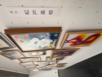 美術部の部員たちと中学生たちが透明水彩で各々好きな色で描いた素敵な作品たちです。ご覧ください。