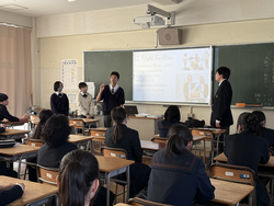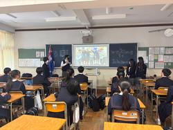 国際人文科2年生が、河原塚中学校2年生を対象に海外研修の報告会を行いました。当日は中学生が本校に来校し、10グループに分かれて、海外研修で学んだ成果を発表しました。 今年度は、オーストラリア特有の動物やスポーツ、食べ物、言語、環境問題、お金の事情、日本とオーストラリアの生活や学校の違いについて、クイズやゲームを取り入れながら理解を深めてもらえるよう工夫しました。 国際人文科2年生は、海外研修出発前にグループごとに発表内容を決定し、現地での研修中には写真を撮影したり、現地の方々から話を聞いたりして、発表に必要な資料を集めました。帰国後は授業内でさらに調べ学習を行い、内容を深めたうえでスライドにまとめ、英語でプレゼンテーションを行いました。この調べ学習を通して、生徒たちはオーストラリアへの理解を深めるとともに、日本との違いに驚く場面も多く見られました。 違いを知るということは、相手を知り、多様性を認めることにつながります。そして同時に、自分自身や自国について考えるきっかけにもなります。本活動を通して、生徒には「調べて終わり」ではなく、相手を知ろうとする姿勢の大切さを学んでほしいと考えています。市松を卒業した後、それぞれが進む道で多様な人や文化、場所に出会う中でも、「知ることの大切さ」を大切にしてほしいと願っています。 また、今年度は国際人文科2年生の保護者の皆様にもご参観いただき、生徒たちが海外研修の成果を報告し、発表に真剣に取り組む姿をご覧いただくことができました。ご多用のところご来校いただき、心より感謝申し上げます。