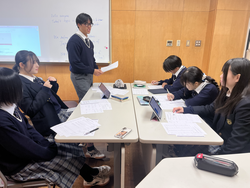 国際人文科の授業紹介②です! 次はDebate・Discussionです!国際人文科2、3年生の週2時間の授業です。この科目では、自分の考えを英語で相手に分かりやすく伝える方法を学びます。スピーチ、プレゼンテーション、ディスカッション、ディベートなど多くのSpeaking styleに挑戦し、様々な場面に合わせた話し方を学びます。このクラスも13~14人の少人数授業で、3セミナーに分かれて行います。また、CNN Newsの教材を用いたリスニングを行い、ネイティブスピーカーの話すスピードになれる練習も行なっています。CNNのニュースに関連する題材で自分の意見を考え、発信する練習も行なっています。 こちらの授業もALTから一人一人手厚いサポートや指導をもらい、着実に発表するスキルを向上させていきます。2年次終了時には、即興型ディベートができるようになります。また、年度末には各学年スピーチコンテストを行い、学年を越えて発表を行う予定です!