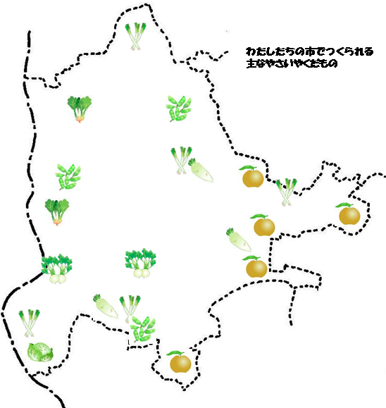 ・いろいろな種類のやさいが松戸市内でとれることがわかります。