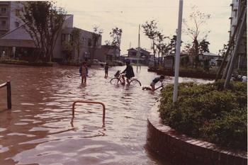 坂川のまわりは土地が低く、雨が降るとすぐに川の水があふれ、水びたしになってしまいました。 私が子供のころ住んでいた旭町(あさひちょう)付近でも、ひどい洪水があって、1ヶ月間、学校へ行かれないこともあったんですよ。