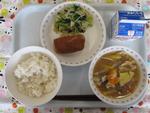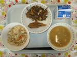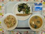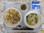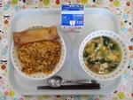 ジャンバラヤ さけとチーズのはるまき もずくととうふのスープ ぎゅうにゅう |