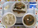 ごはん てづくりのりつくだに さばのごまみそやき ごもくきんぴら かきたまじる ぎゅうにゅう |
