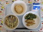 けんちんうどん きなこおはぎ ごまきゅうり わかさぎのフリッター ぎゅうにゅう |