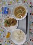 ごはん さんまのユーリンチーソース カレーもやし はるさめスープ ぎゅうにゅう |
