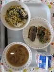 わかめごはん あじのさらさあげ きりこんぶのごもくに さといもとぶたにくのみそしる ぎゅうにゅう |