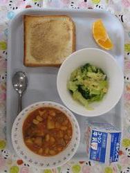 セサミトースト ポークビーンズ ブロッコリーサラダ デコポン ぎゅうにゅう |