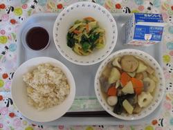 げんまいごはん てづくりのりつくだに いわしのこうそうやき ごまじたてのみそしる きりぼしだいこんのにもの ぎゅうにゅう |