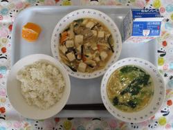 ごはん とうふのちゅうかに ちゅうかふうコーンスープ ぽんかん ぎゅうにゅう |