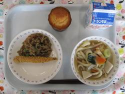 けんちんうどん ししゃもフライ ごもくきんぴら なしのカップケーキ ぎゅうにゅう |