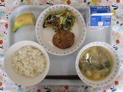 ごはん てづくりつくね のりあえ とうにゅういりみそしる バナナ ぎゅうにゅう |