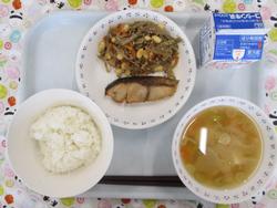 ごはん さわらのさいきょうやき わかめサラダ さつまじる ぎゅうにゅう |