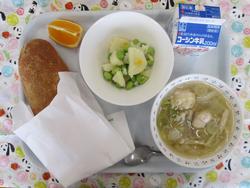 きなこあげパン はるさめにくだんごスープ えだまめポテト きよみオレンジ ぎゅうにゅう |