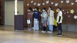 今日の昼休みに23日(火)に行われる1年生を迎える会のリハーサルを行いました。