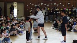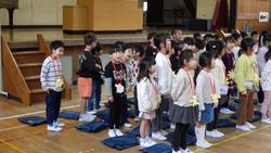 昨日の3校時、1年生を迎える会がありました。はじまりはベルを響かせて