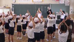 今日の朝の時間は各クラスとも運動会の応援練習でした。