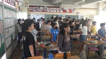 今日は、1学期最後の終業式です。校長の話では、「豊かな心を持ち、自ら学び考え、健康に過ごす」