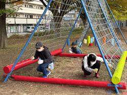 2日に50周年記念のPTA美化作業で『遊具ピカピカプロジェクト』を行いました。